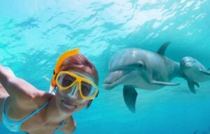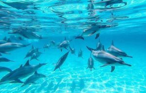 Départ à 8h de votre hôtel, Trajet en mini van climatisé (8 personnes max). Session de nage avec les dauphins.